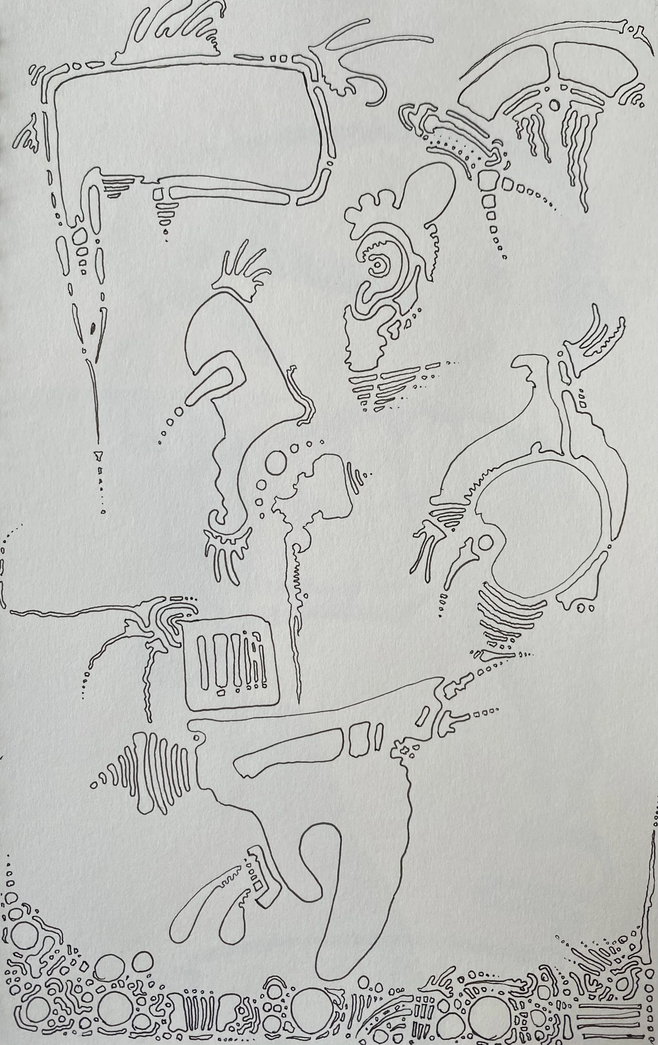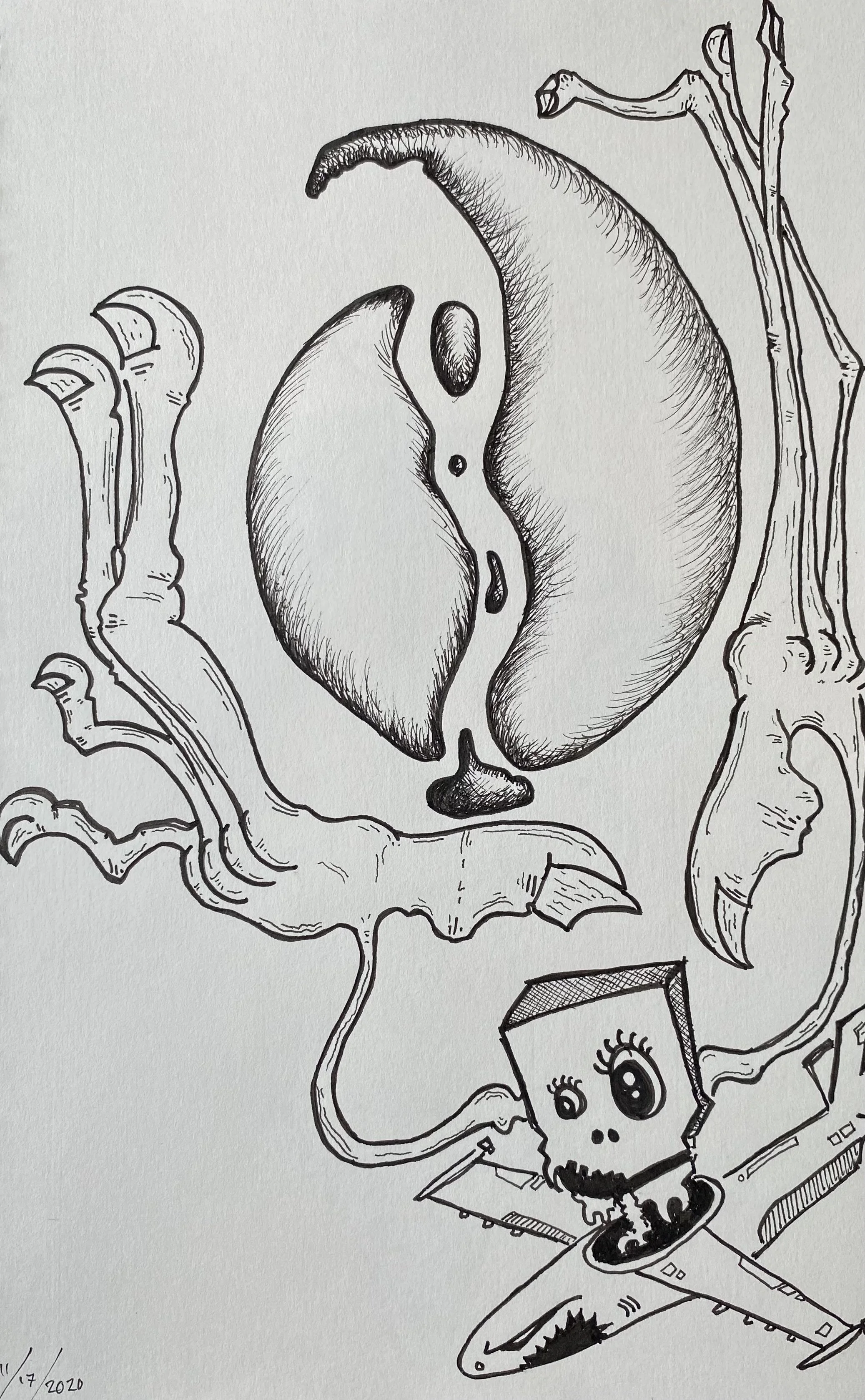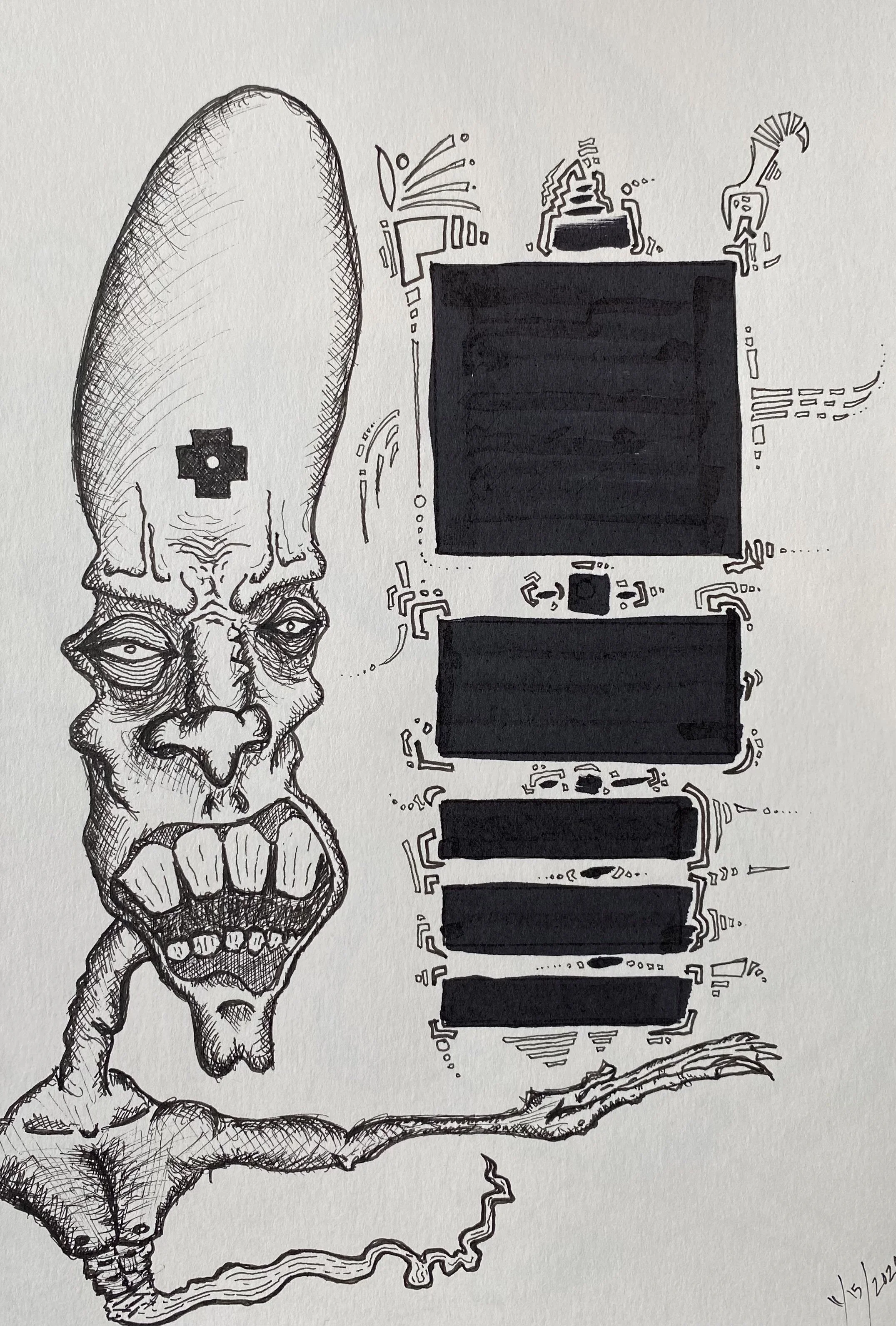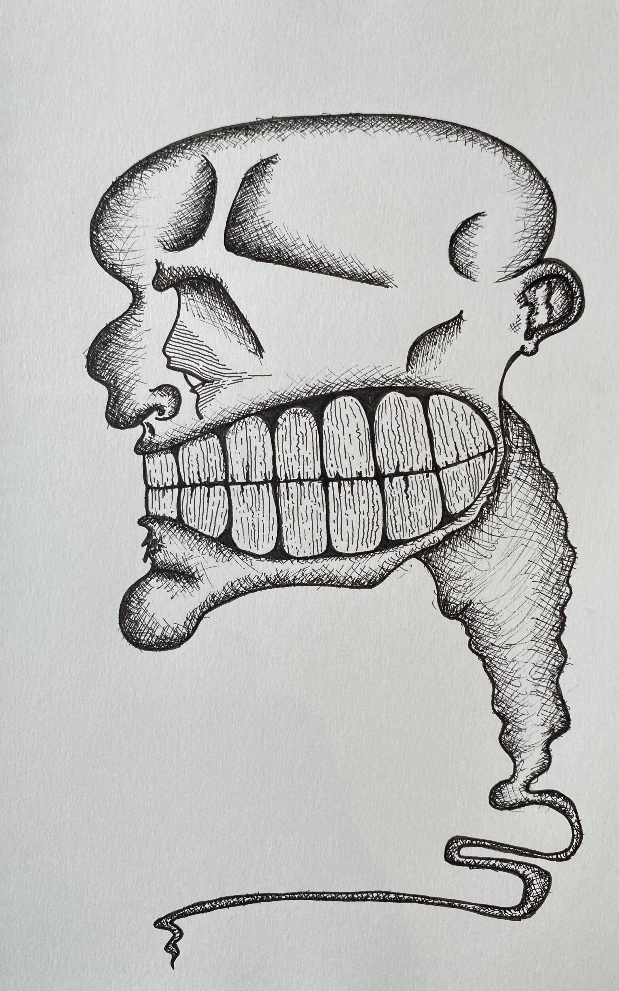 Raw, rough, and refined pen and ink drawings. An exploration of contrast and shadow techniques. Most noses have been broken.